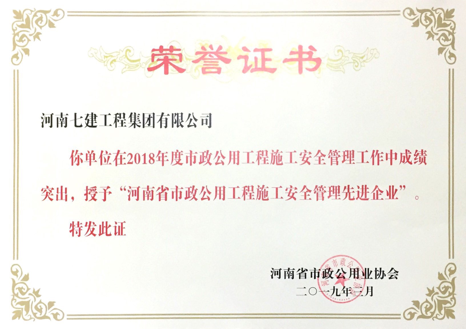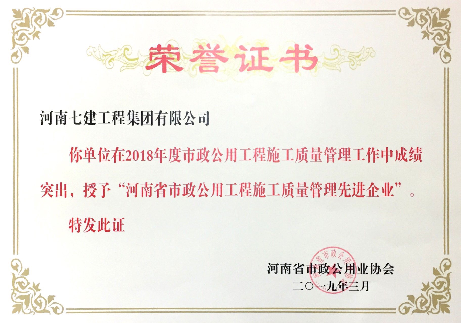 河南七建工程集團(tuán)有限公司被評為2
