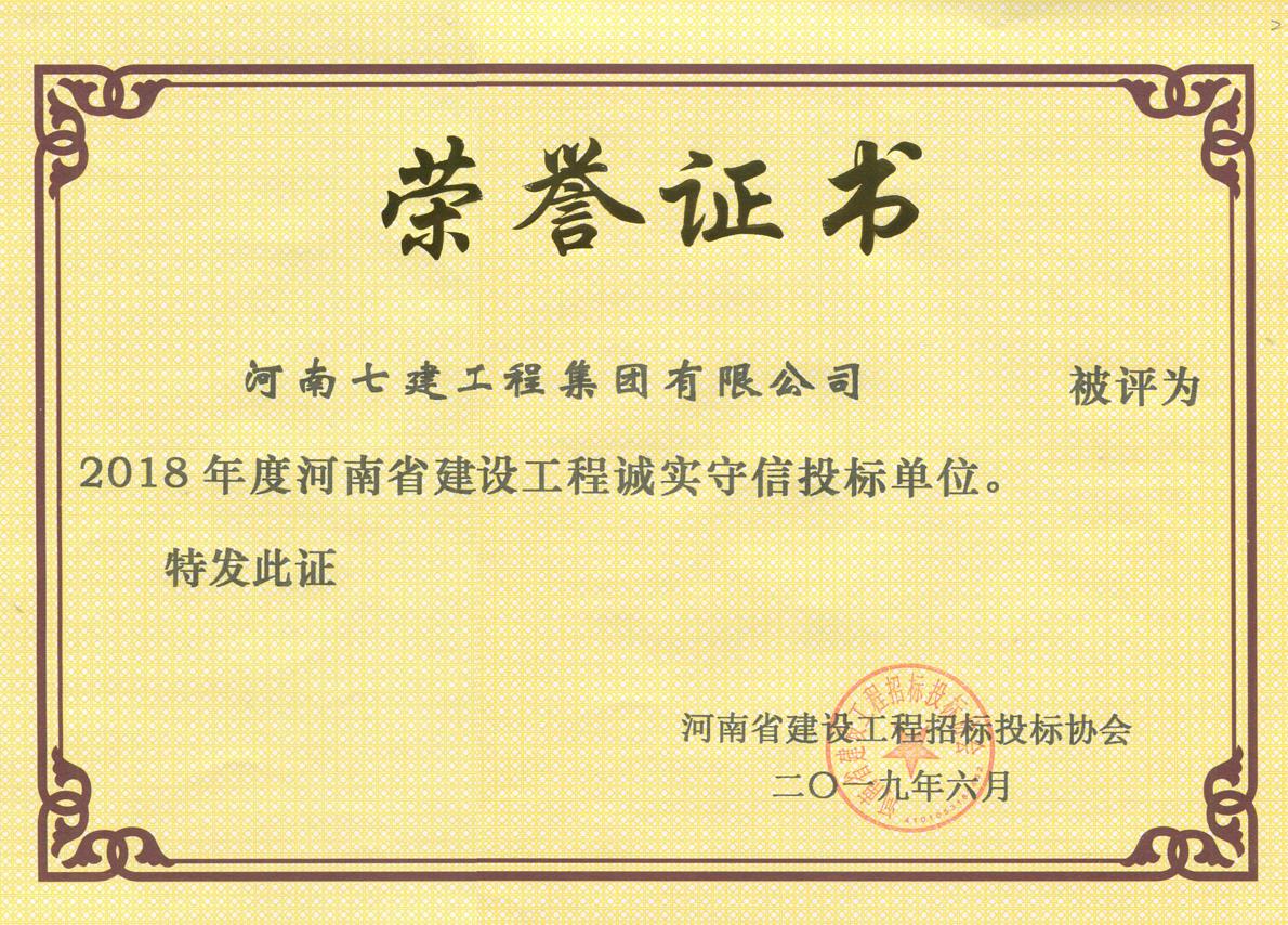 2018年度河南省建筑業(yè)AAA級