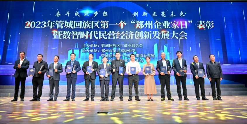 河南省工商聯(lián)主席胡漢陽(yáng),市委常委、統(tǒng)戰(zhàn)部部長(zhǎng)黃卿與獲獎(jiǎng)企業(yè)家合影